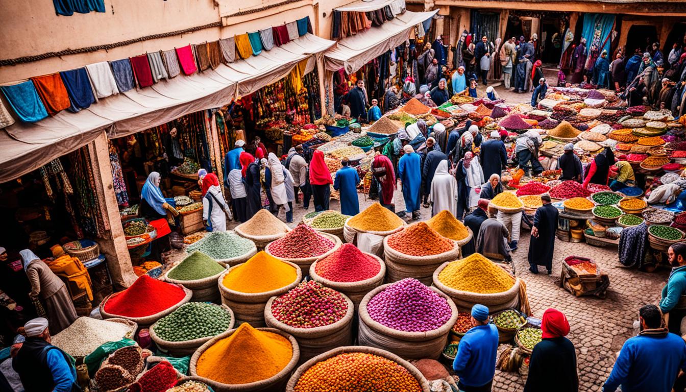 Exploring the souks is an exciting journey. These markets show you the true spirit of Moroccan culture. You can talk prices with vendors and find all sorts of crafts, spices, and foods.