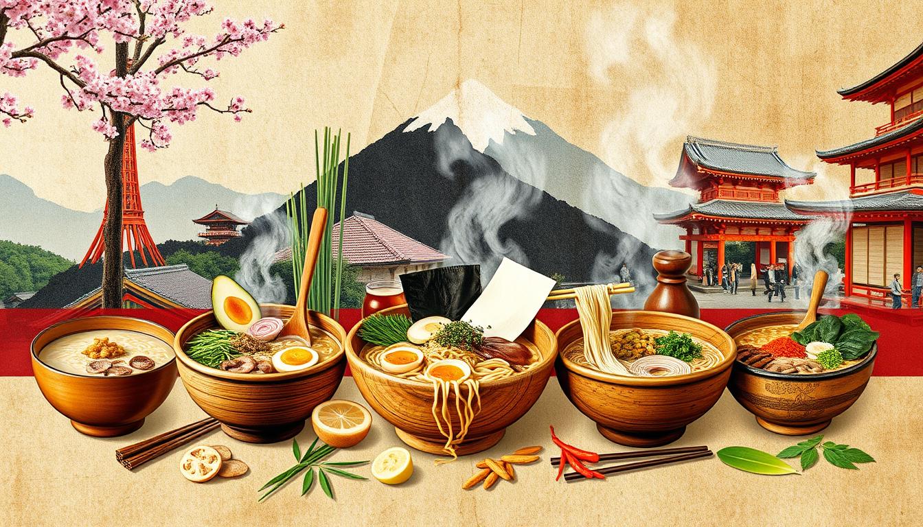 Ramen’s story is one of change and creativity. Different places and cultures have made their own ramen styles. From Sapporo’s spicy miso ramen to Kyushu’s tonkotsu ramen, each shows local Japanese food culture and ramen origins.